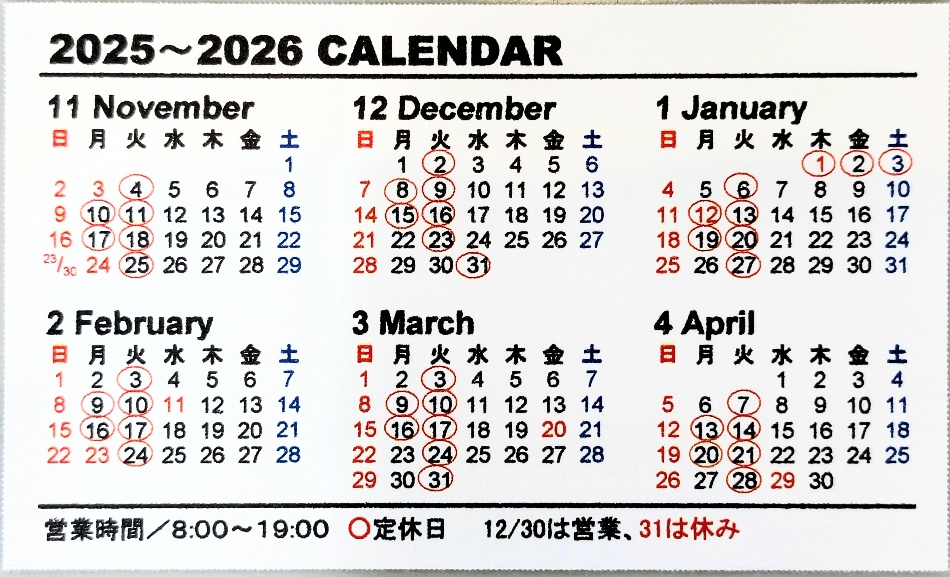 2025年12月31日(水)〜2026年1月3日(土)は、お正月休みとなります。